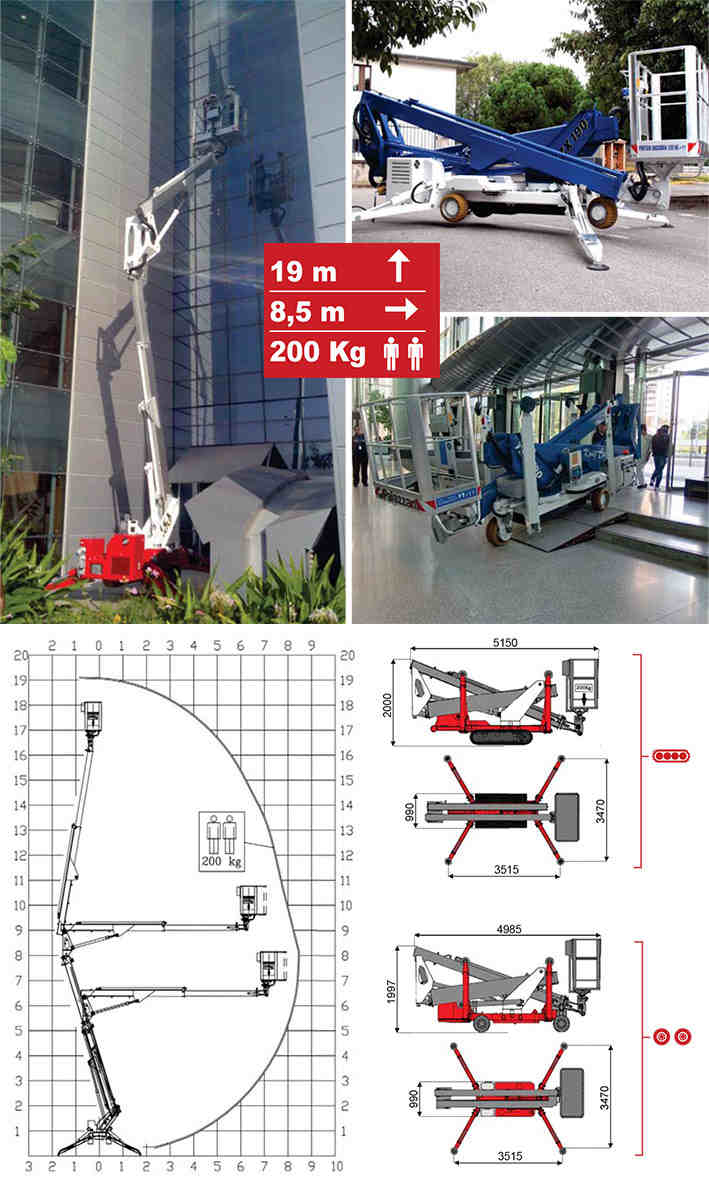 TZX190蜘蛛式曲臂高空作業車是高空作業平臺中重量較輕的伸縮臂升降平臺,其特點是自重較輕,可運用在大廈、商場、酒店等不能承受過重升降設備的場所。運用四條支腿為支撐點,支撐整個設備在升降中的平衡,體形小巧,可通過正常門框,動力為交流電、電瓶或燃油。TZX170蜘蛛車底盤可以配置履帶式和輪胎式兩種行走形式的底盤。
